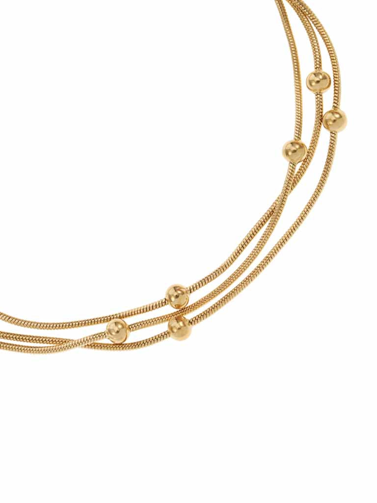 Deze By Jam Gioielli multi-strand armband combineert moderne elegantie met luxe. Vervaardigd uit premium chirurgisch roestvrij staal en dubbel 14k goud verguld voor een blijvende glans. De meerdere lagen met subtiele bolletjes geven deze armband een stijlvolle, verfijnde uitstraling die perfect past bij zowel casual als chique outfits.